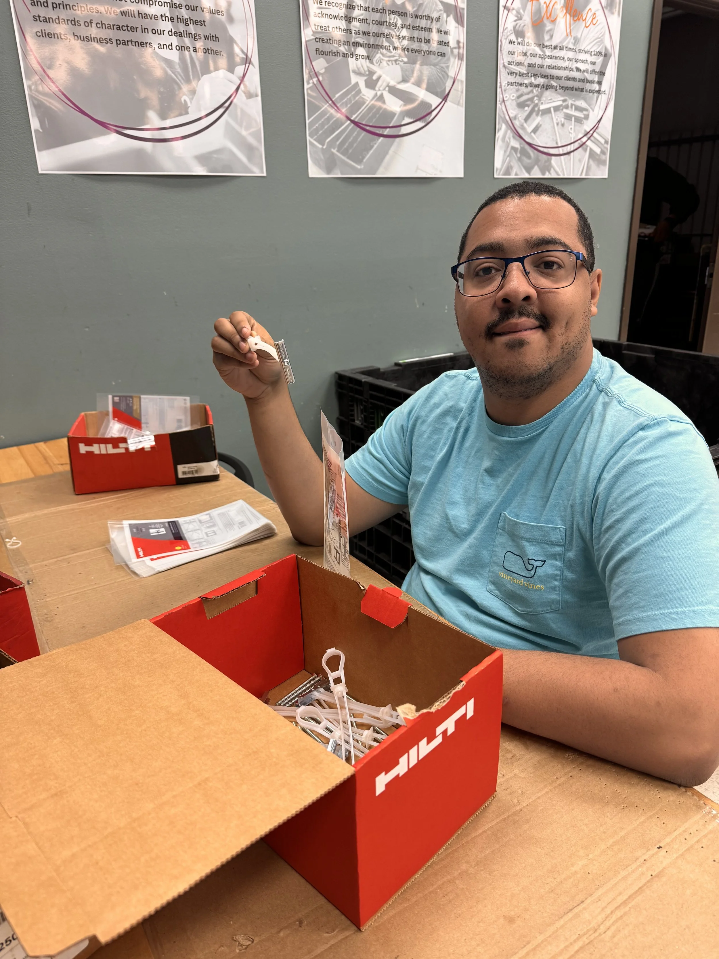 Willie J. has worked at Bridges’ Outsource Workcenter for two years, where he helps assemble and package components for Hilti, a global construction and engineering company known for its high-quality tools and products.
